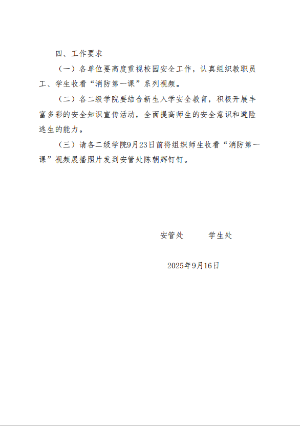 皖新院安〔2025〕9 号关于组织收看2025年秋季开学“消防第一课”视频展播的通知