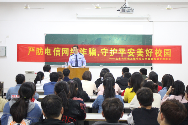 10月17日下午,高新派出所副所长孙传洋、民警司源等同志参加了必赢土木与环境工作学院的主题班会。孙所长与师生进行了互动,就防电信网络诈骗的危害性、隐蔽性、难以追回的特点进行了宣讲。