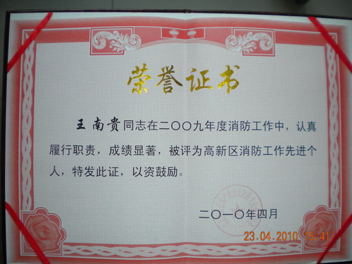 我院喜获高新区2009年度消防工作先进单位荣誉称号