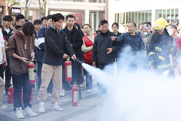 此次启动仪式活动现场,设置了消防公益宣传视频观看区、消防器材展示区、消防安全知识分类板块展示区等;同时现场还开展了灭火实操演练,参加人员纷纷踊跃参与体验使用灭火器灭火,进一步激发了师生在日常生活中关注消防安全、参与消防宣传的积极性。