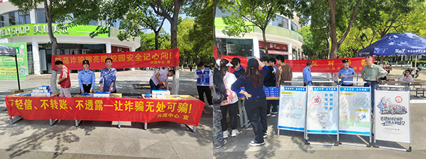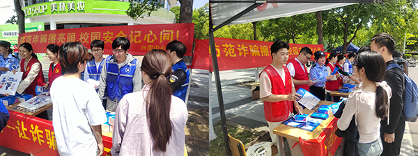 本网讯(通讯员:张大勇) 为增强师生防诈意识,营造安全校园环境,4月25日中午,必赢联合兴园中心、香樟社居委、高新派出所,在学校二期广场开展反诈主题宣传活动。兴园中心平安部部长宣峥嵘、高新派出所民警程永兵、香樟社区和学校安管处相关人员参加了宣传活动,华园义警队全程协助,现场近千名学生参加活动。