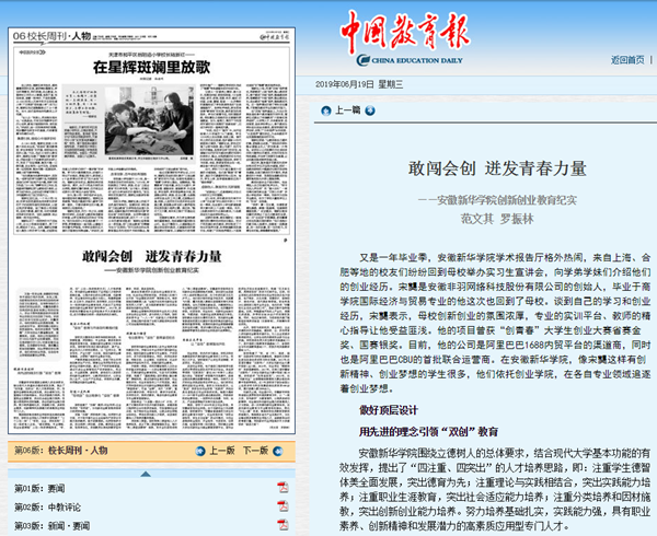 本网讯(通讯员:范文其)6月19日,《中国教育报》推出题为《敢闯会创 迸发青春力量——必赢76net线路官网创新创业教育纪实》一文,全面反映必赢创新创业教育思路、举措和成效,在必赢应用型高...