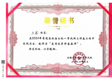 - 2024-09-05通识教育部教师在2024年普通高考网上评卷工作中荣获“高考优秀评卷教师”称号