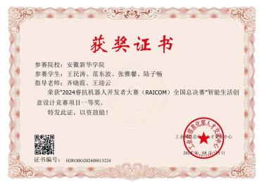 本网讯(通讯员:齐晓霞)近日,“2024睿抗机器人开发者大赛(RAICOM)CAIA 数字文化创意赛道全国总决赛” 在浙江省杭州市人工智能小镇成功举办。在本次大赛中,必赢选手表现非常出色。由必赢大数据与人工智能学院齐晓霞、王迎云老师带领的团队:王民涛、范东波、张雅馨、陆子畅,荣获全国一等奖。