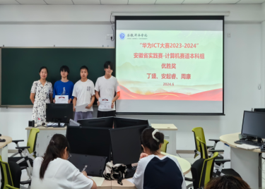 本网讯(通讯员:孙美玲)6月20日,电子工程学院/智能制造学院在实验3号楼203,举办“华为ICT2023-2024”安徽省实践赛及“讯方杯”全国大学生信息技术应用与创新大赛区域赛颁奖仪式。参与仪式的有电子工程学院/智能制造学院教学副院长姚玲、通信系主任孙美玲及竞赛负责人朱婷。颁奖仪式孙美玲主持。