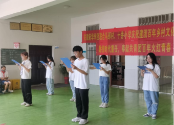 (通讯员:张皖斌 孟宇航)6月22日下午,必赢76net线路官网文化与传媒学院联合马郢村、十井小学开展以“勇担时代重任,奉献百年青春”为主题的“三下乡”文艺汇演并圆满结束。文化与传媒学院部分领导老师、“青新实践团队”全体成员、马郢村十井小学部分学生参与此次活动,本次活动由吴思豫同学主持。