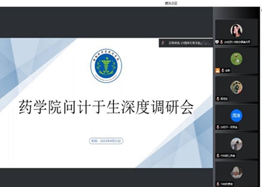 本讯网(通讯员:赵影 郑海飞)为切实做好常态化疫情防控工作,确保学院各项工作有序开展。4月25日中午,药学院开展问计于生深度调研线上会议。会议由学管兼行政秘书赵影主持,执行院长黄德垚,院长助理汪涵涵、宋祖荣,辅导员代表陈洁馨、各班学生代表参与本次调研会。