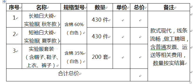 2、项目名称:医学学生实验服询价项目
