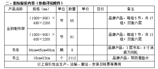 1、项目名称:《图书馆钢制书架、书车、书立》项目