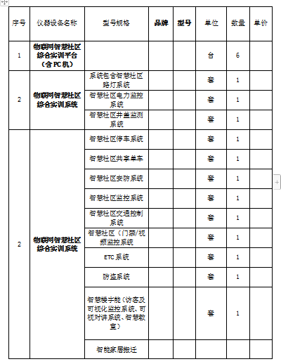 2、招标内容:《物联网(智慧社区)综合实训室》 (数量2间)