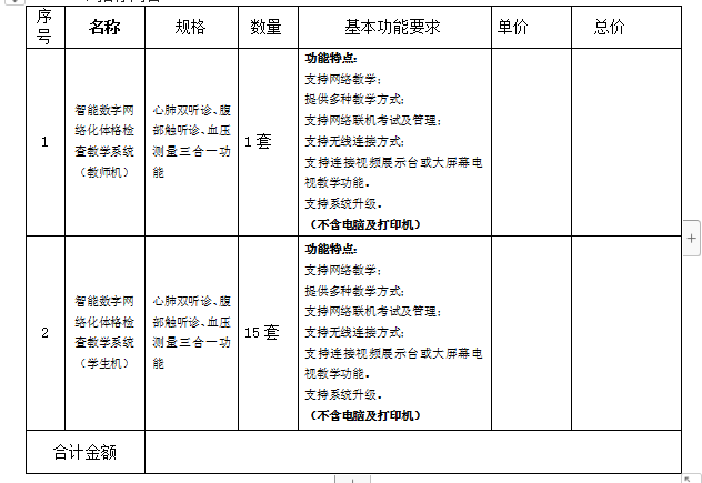 根据学院发展需要,现就安徽医科大学临床医学院《健康评估实训室》项目进行公开询价,欢迎全国符合条件的供应商报名参与。