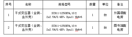 根据建设需要,现对学院配电房干式变压器项目进行公开招标,欢迎全国范围内符合条件的生产商及供应商积极参与。