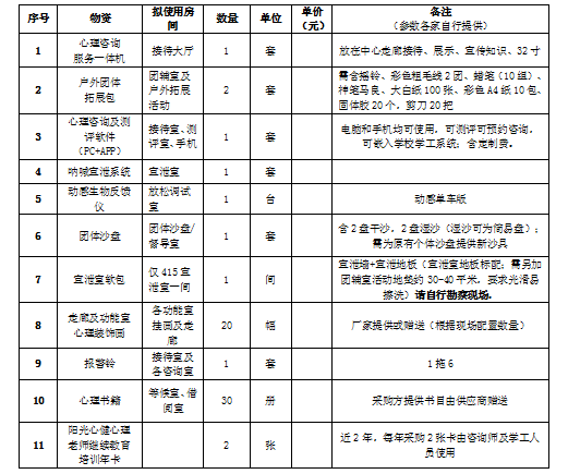 根据2019年建设计划,拟对必赢心理健康中心相关设备进行公开招标询价,欢迎符合资质要求的优质供应商参与投标。
