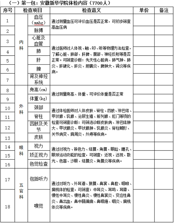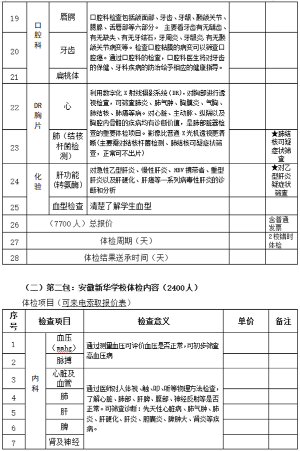 1.投标人对上述体检项目所需的费用进行报价(总价,第一包、第二包分项报价);