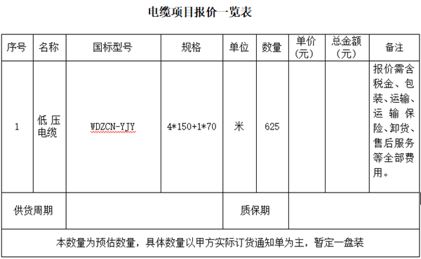 电缆采购招标询价公告