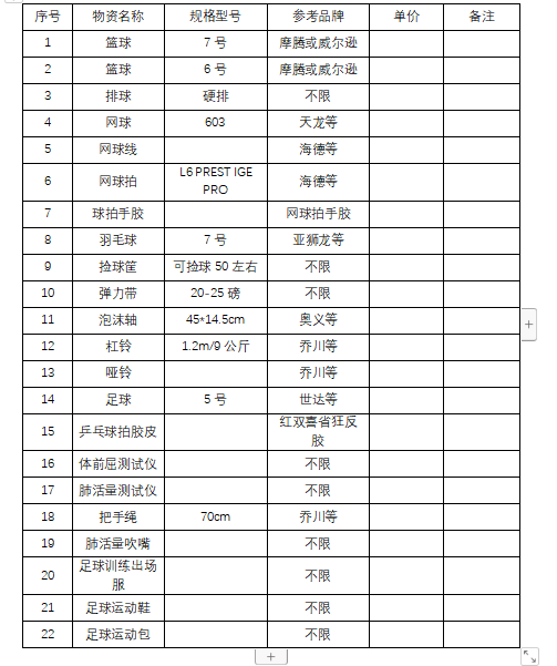 根据学院工作计划,现对学院体育用品类进行公开询价采购,欢迎符合条件的供应商前来参与。