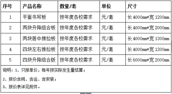 2.报价单位应具备三年以上(包括三年)承接高校黑板供货服务项目案例,且具有良好信誉的生产厂家或优质代理商;