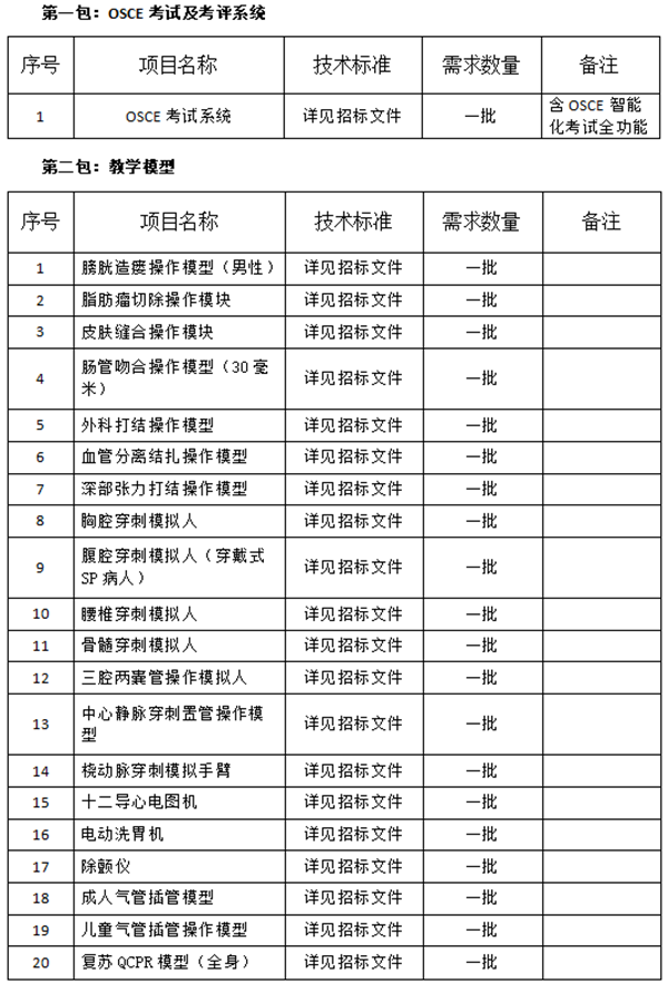 安徽医科大学临床医学院执业医师标准化OSCE考站 软件系统及教学模型设备采购项目招标公告