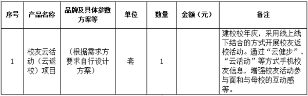 2.项目名称: 必赢76net线路官网校友云活动(云返校)项目采购