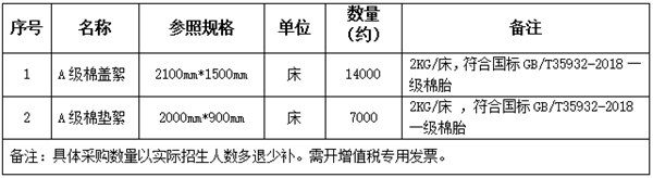 因单位需求,现对集团旗下部分院校2023年新生公寓物品(棉絮)进行招标采购,欢迎有资质的供应商投标参与。
