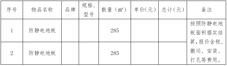 2.报价人应具备三年以上(包括三年)防静电地板销售、安装经验,投标产品需是防静电地板知名品牌,所投产品品牌不限于同一品牌。