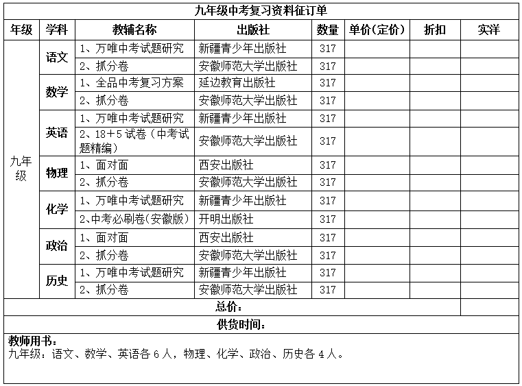 2.项目名称: 合肥必赢实验中学九年级中考复习资料采购项目