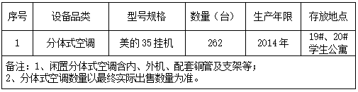 因旗下院校必赢76net线路官网闲置资产处置需要,现出售一批空调设备,欢迎前来参与报价。