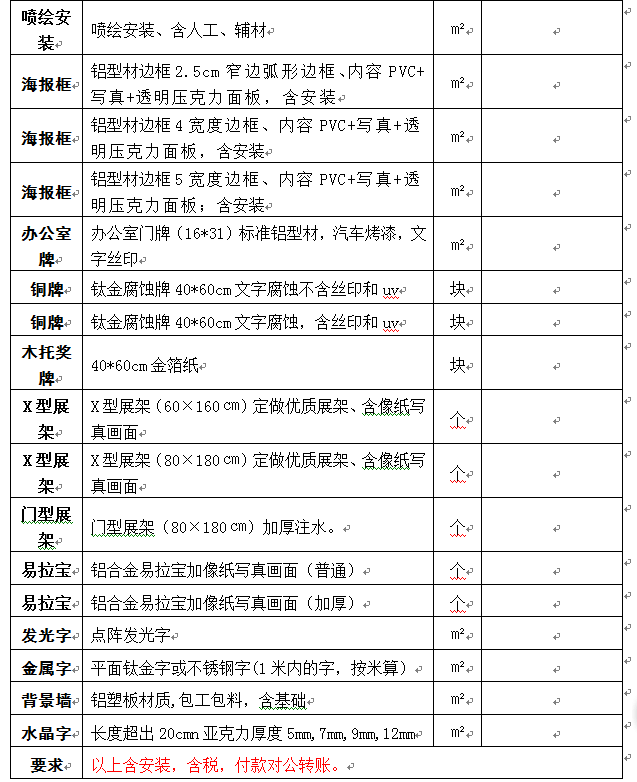 2、投标单位应具备三年以上(包括三年)广告宣传品制作、安装工作经验;