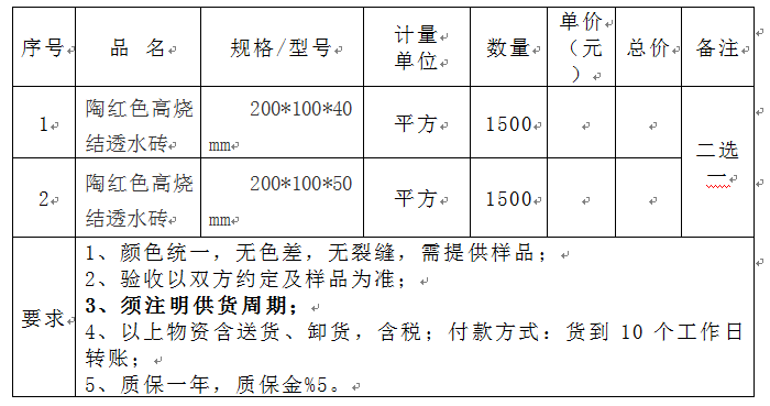 必赢76net线路官网陶红色高烧结透水砖招标公告