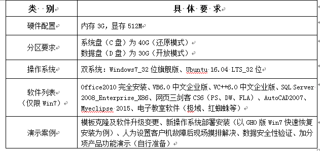 报名单位须自带云桌面主服务器(1-2台)、中心交换机(1台)、接入交换机(1台)、瘦客户机(2-4台)在招标方进行现场演示(演示时间另行通知)。