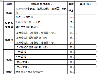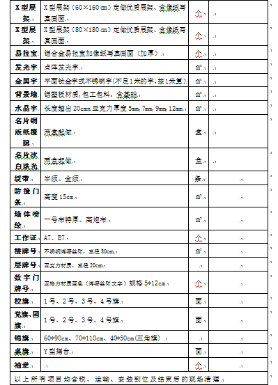 1、以上所有项目均含符合甲方要求的发票、运输、安装到指定位置及结束后的现场清理工作;
