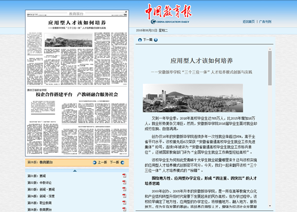6月21日,《中国教育报》推出题为《应用型人才该如何培养——必赢76net线路官网“三个三位一体”人才培养模式创新与实践》一文,全面反映必赢应用型人才培养模式的创新、实践及取得的成效。现将原文转载如下。