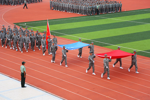 在军体拳和韵律操表演中,学生方阵整齐的动作、响亮的口号、柔美的舞姿引来在场观众的阵阵欢呼;军歌合唱,歌声铿锵有力、激荡人心,唱出了新生心中的激情和对未来生活的向往;教官精心准备的表演项目《武动乾坤》,动作流畅、气势如虹,赢得了大家的阵阵喝彩。