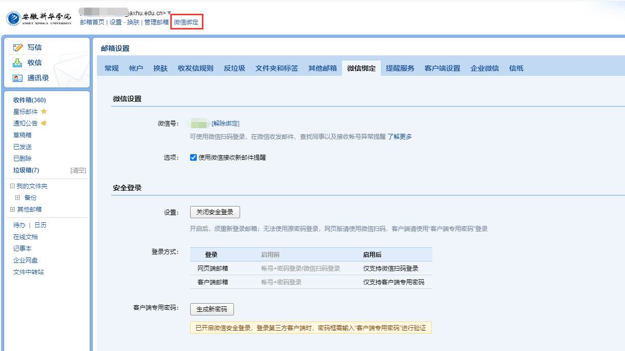 (三)可与微信、QQ等即时通讯软件绑定,可实现PC、APP及微信等途径随时收发邮件;