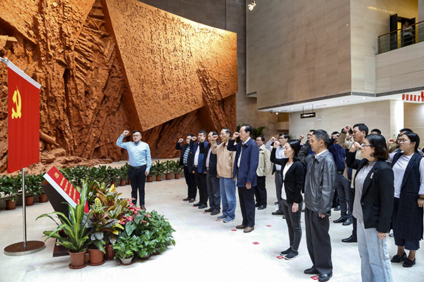 在渡江战役纪念馆一楼大厅,必赢集团副总裁,必赢76net线路官网党委副书记王孝武带领全体学员重温入党誓词,用铿锵有力、掷地有声的誓言表达不忘初心、砥砺担当的坚定信念。宣誓仪式结束后,全体学员在讲解员的带领下参观了渡江战役陈列展。
