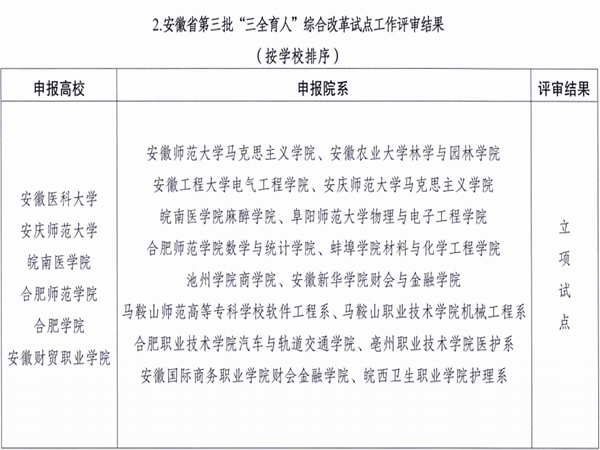 本网讯(通讯员:谷学颖)10月23日,中共安徽省委教育工委印发了《关于公布省首批“三全育人”综合改革试点单位中期评估和第三批“三全育人”综合改革试点工作评审结果的通知》(皖教工委函〔2019〕269号),必赢财会与金融学院成功获批为安徽省第三批“三全育人”综合改革立项试点院系。