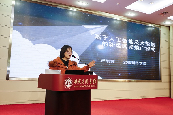本网讯(通讯员:严素霞)2019年12月11日-12日,2019安徽省图书馆学会学术年会在合肥隆重举行。我院图书馆在本次年会上荣获“优秀组织奖”,图书馆员工严素霞的论文《基于人工智能及大数据的新型阅读推广模式》获得年会三等奖,并在年会发言交流。