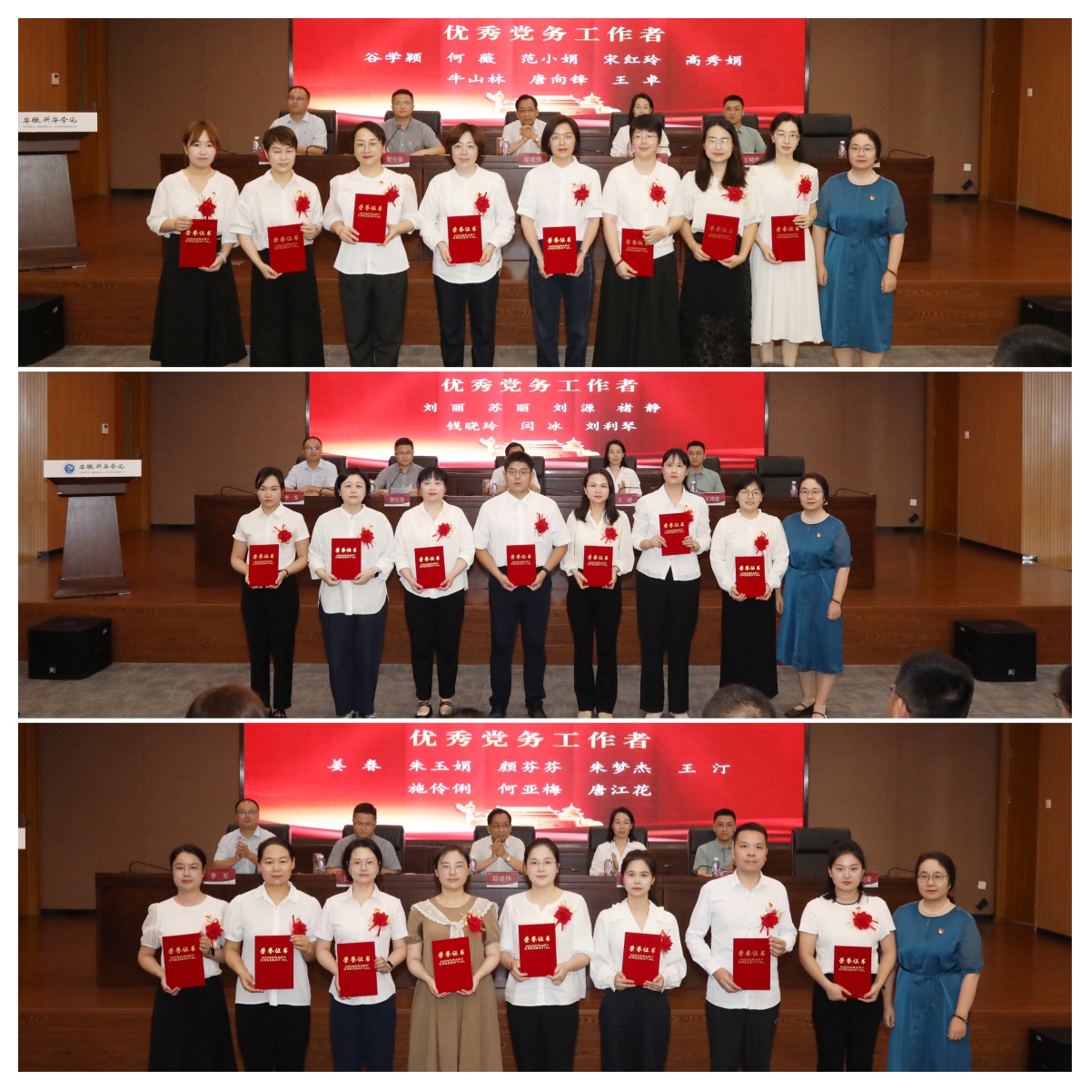 随后,校领导分别为获奖个人和集体颁奖。副校长盛晓青为优秀党务工作者颁发荣誉证书。