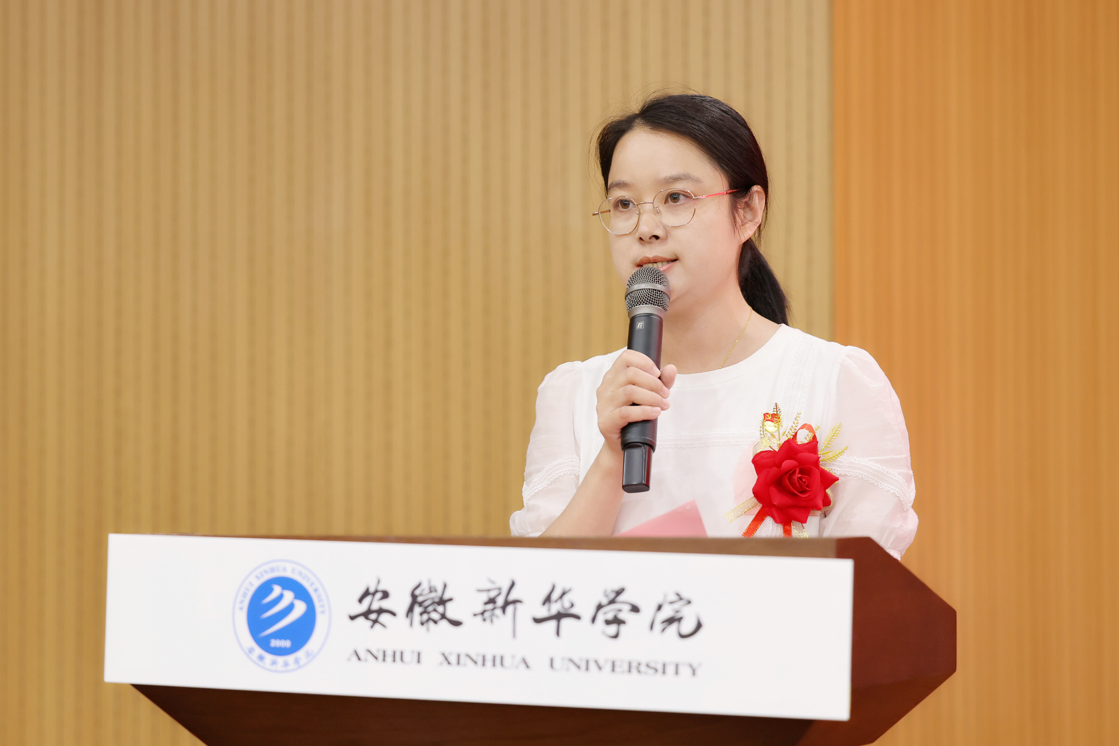 优秀党务工作者代表、通识教育部直属党支部兼职组织员唐江花分享了党务工作的责任与感悟。她表示,党务工作者需以赤诚党心、扎实理论、协调能力和服务意识为支撑,用心服务党员、凝聚组织力量,为党建工作提质增效贡献力量。