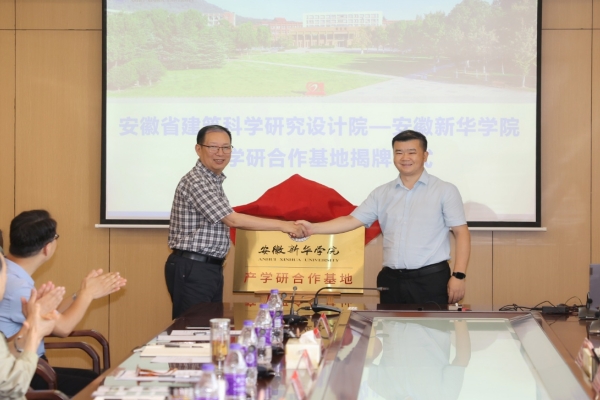 安徽省建科院党委副书记、院长刘春雷与必赢76net线路官网校长赵良庆共同为产学研合作基地揭牌。随着红绸缓缓落下,产学研合作基地正式成立,这不仅是双方合作的重要里程碑,更是双方携手共进、共谋发展的新起点。