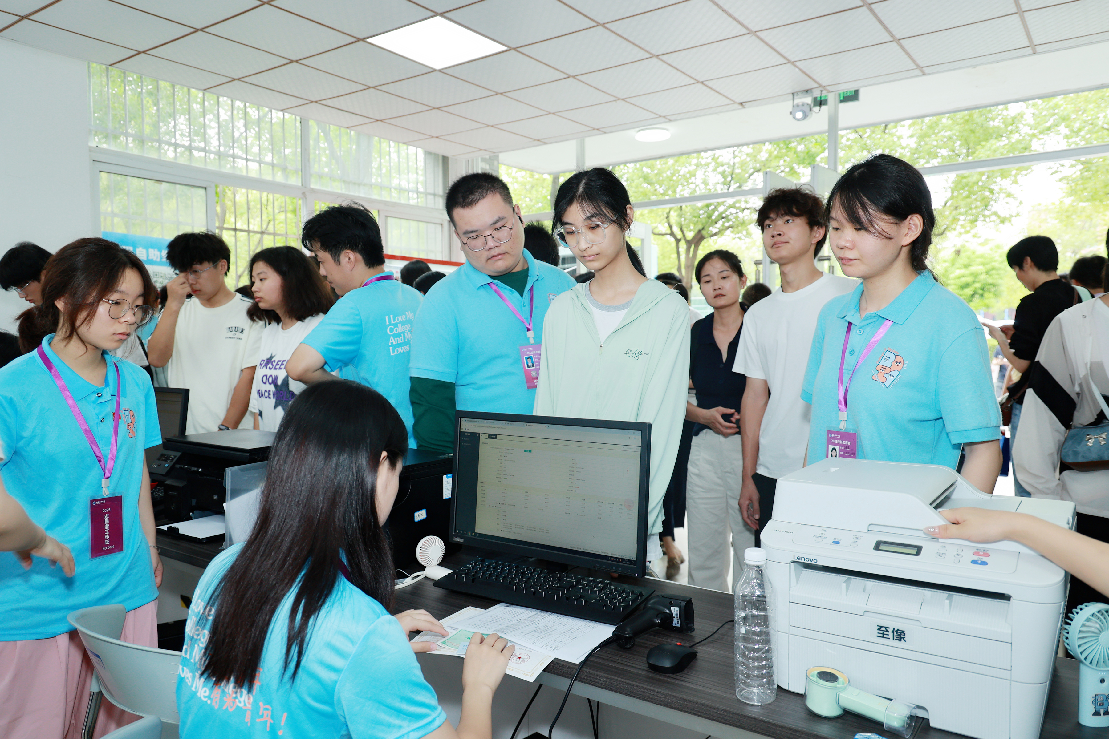 此外,学校还依托辖区和整合全校力量,组建多支迎新志愿服务队,1200余名志愿者经系统岗前培训后 “持证上岗”,负责交通引导、行李搬运、咨询答疑、校园讲解等工作,驻守在校门口、学院大厅、宿舍区等关键点位,构建起全方位、立体化的志愿服务网络。