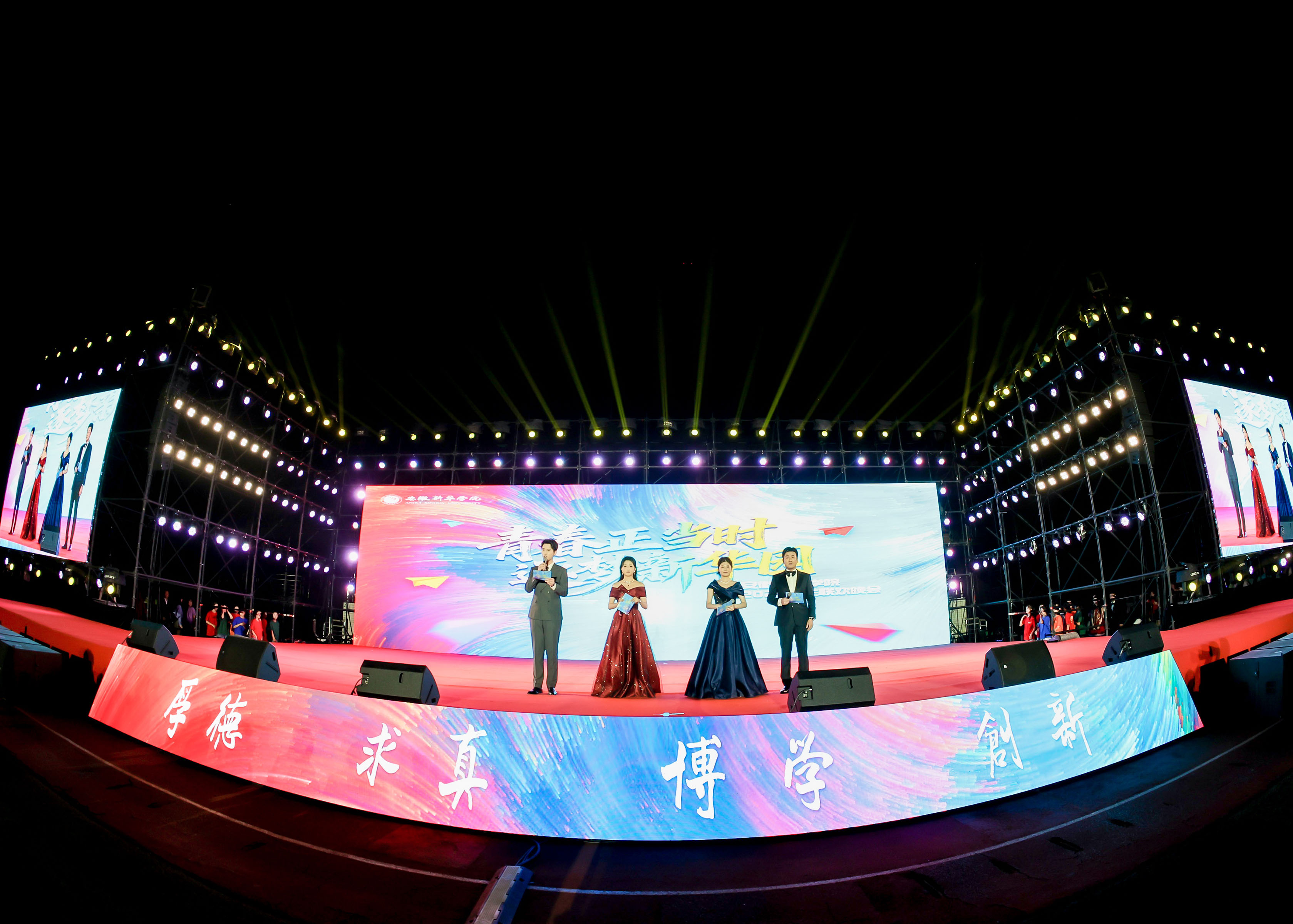 晚会在活力四射的开场表演《我的未来超OK!》中拉开帷幕,瞬间点燃全场气氛。来自文化与传媒学院的教师王子乔、2009届校友方伟睿,以及2025级新生田澈、胡广城联袂主持,师生同台,展现了必赢园浓厚的人文传承与青春朝气。