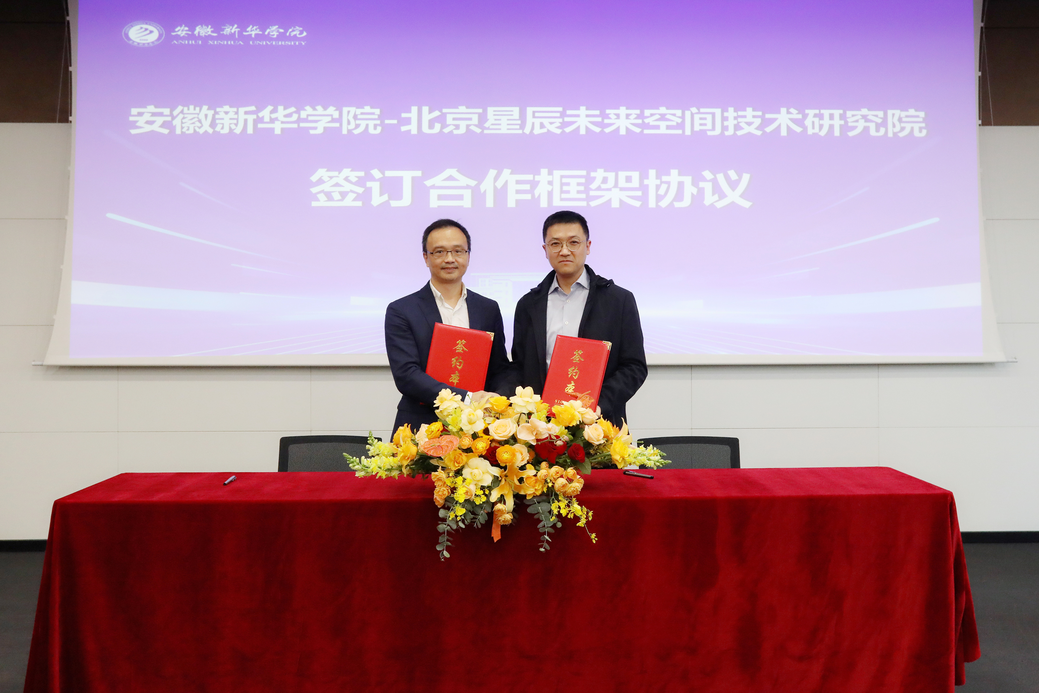 随后,北京星辰未来空间技术研究院院长张善从与副校长王琦进分别代表双方签署战略合作框架协议。