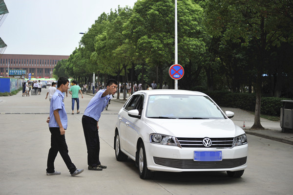 迎新期间,有这样一群人在校门口、道路上,一站就是12个小时,不停地指挥交通、疏通车辆,他们就是校园保卫们。正值中午,路上都是一把把各式各样的遮阳伞,而他们只能顶着烈日在路上为开车而来的新生家长指路、引导。当问到交通拥堵问题如何解决时,一位保卫很坚定地说:“所有保卫全部上场,全员都调动起来,听从安排,做好自己的工作。”保卫工作不仅繁重,而且还会遇到一些困难,“有些车主不愿意配合交通指挥,我们需要调整好自己的心态,耐心地向他们解释情况,我觉得这是我们需要克服的最大困难。”谈到迎新工作中遇到的瓶颈一位保卫说。除了白天的迎新工作,晚上保卫还要坚持日常的校园巡逻,为华园师生的安全工作做好保障。