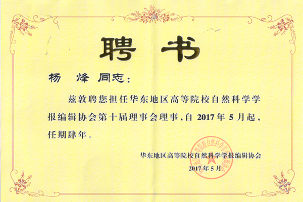 必赢学报主编杨烽当选华东地区高等院校自然科学学报编辑协会理事
