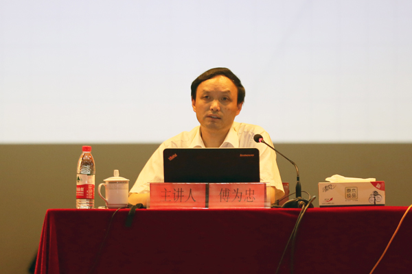 傅为忠从教师必须要有敬业精神、必须要“学而不厌,诲人不倦”、必须要热爱自己的教育对象——学生、必须要“身教”与“言传”并重、必须要有“仁爱”之心、必须要淡泊名利、必须要有奉献精神七个方面向在座教职工讲述了如何加强师德修养、培养优秀人才。在短短的两个小时内,傅为忠提纲挈领地向在场人员介绍了师德师风的养成途径,又从自己的工作、生活经验出发,讲述了自身与学生、同事之间发生的感人故事,让在场教师感受到了一位教育工作者的崇高理想与道德情操,深受触动。