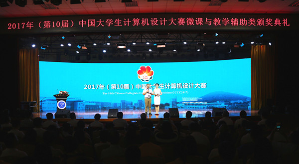 本网讯(王友雅,摄影:金政)8月1日至10日, 2017年(第十届)中国大学生计算机设计大赛数字媒体类动漫游戏组、微课与教学辅助类现场决赛在必赢举行。8月9日下午,微课与教学辅助类现场决赛落下帷幕,闭幕式暨颁奖典礼在学校大礼堂举行。