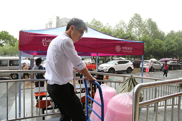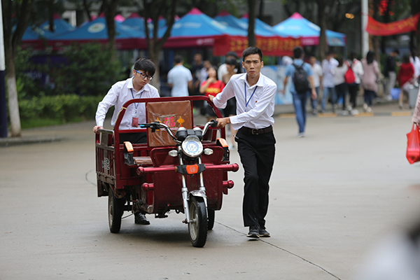 来自信息工程学院的陈昌飞就是志愿者中的一员,他表示,一直忙碌虽然有点累,但看到学弟学妹顺利完成报到,听到家长连声的“谢谢”,会让他感到很值得,累并开心着。他的同伴殷智康说:“我们也都曾是新生,如今站在学长的角度,看着学生父母对孩子上大学眼中流露的关怀与期许,为他们忙前忙后,真的很有感触,才更加明白了当初自己父母对自己的关心和期待。”采访的过程中,也会遇到一些新生过来询问,他们都会认真的聆听,并耐心回答。