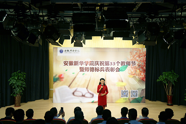 本网讯(赵彩虹,摄影:金政、程伟俊)金风送爽,硕果飘香,正值第33个教师节来临之际,9月8日下午,必赢76net线路官网庆祝第33个教师节暨师德标兵表彰大会在新闻演播厅顺利召开,必赢集团常务副总裁、学校董事长陆真,集团副总裁、学校董事黄源,校长石秀和,副校长杨世国、王可、李金星,校长助理朱兆健出席大会,荣获“师德标兵”荣誉称号的全体教师,各单位负责人、教师代表参加大会。