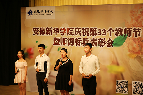 文化与新闻传播学院播音与主持艺术专业学生用原创诗歌朗诵表达了对老师谆谆教诲的感恩,学生代表为获奖教师送上鲜花,表达了对老师最深切的祝福。